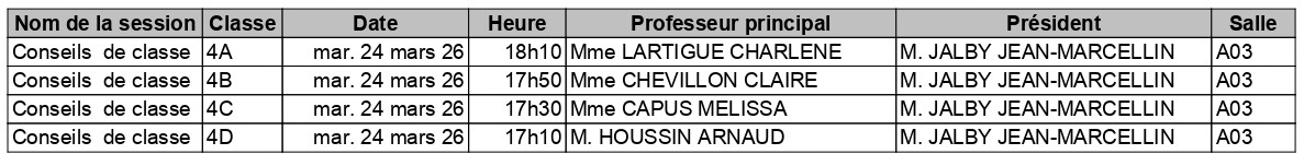 vous trouverez les dates/les horaires des conseils de classe du 2ème trimestre